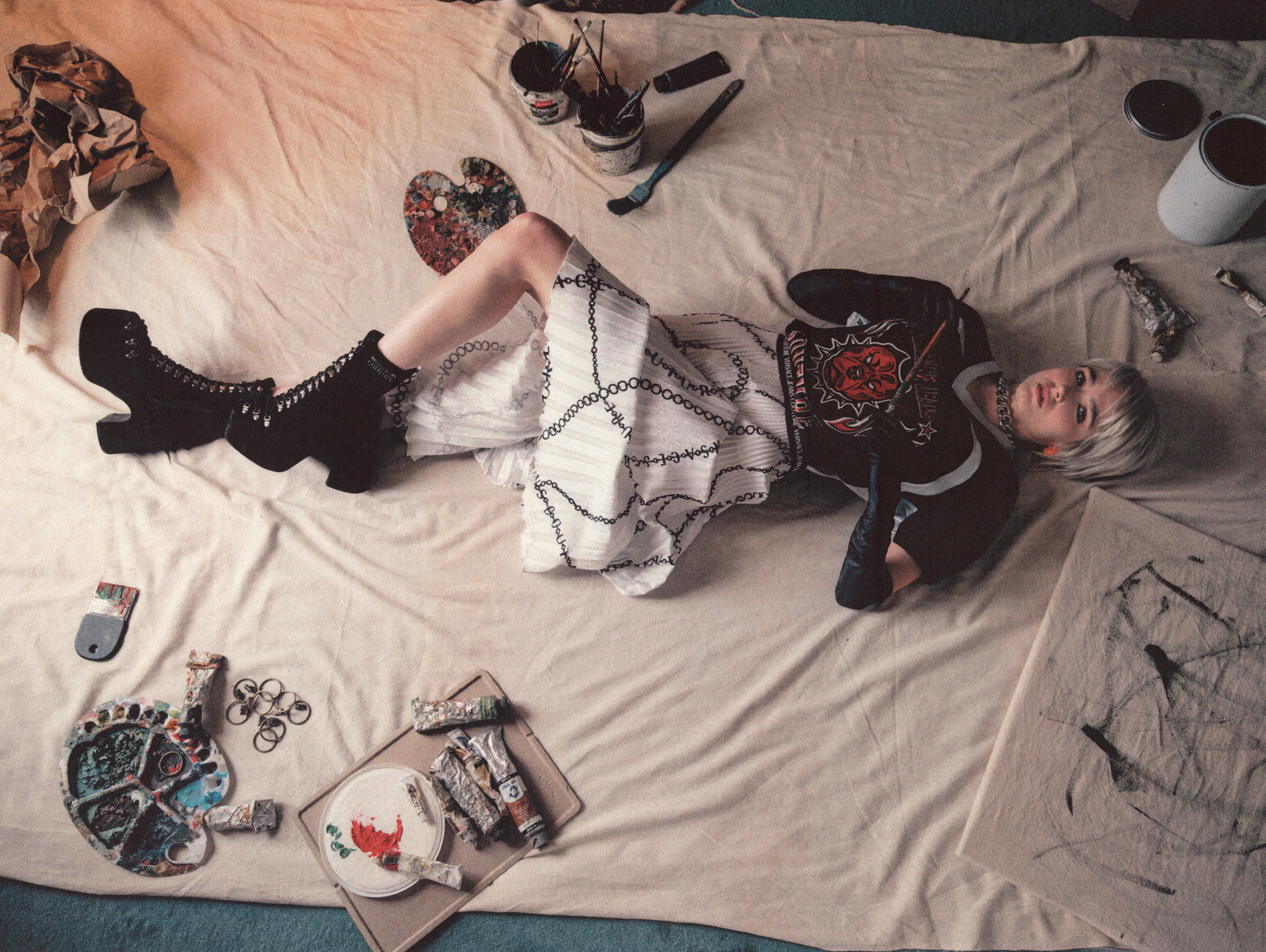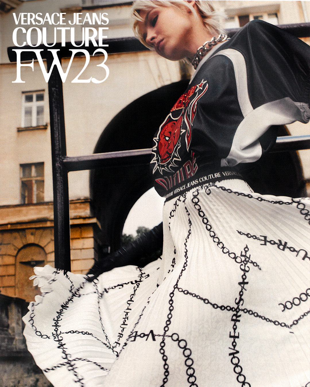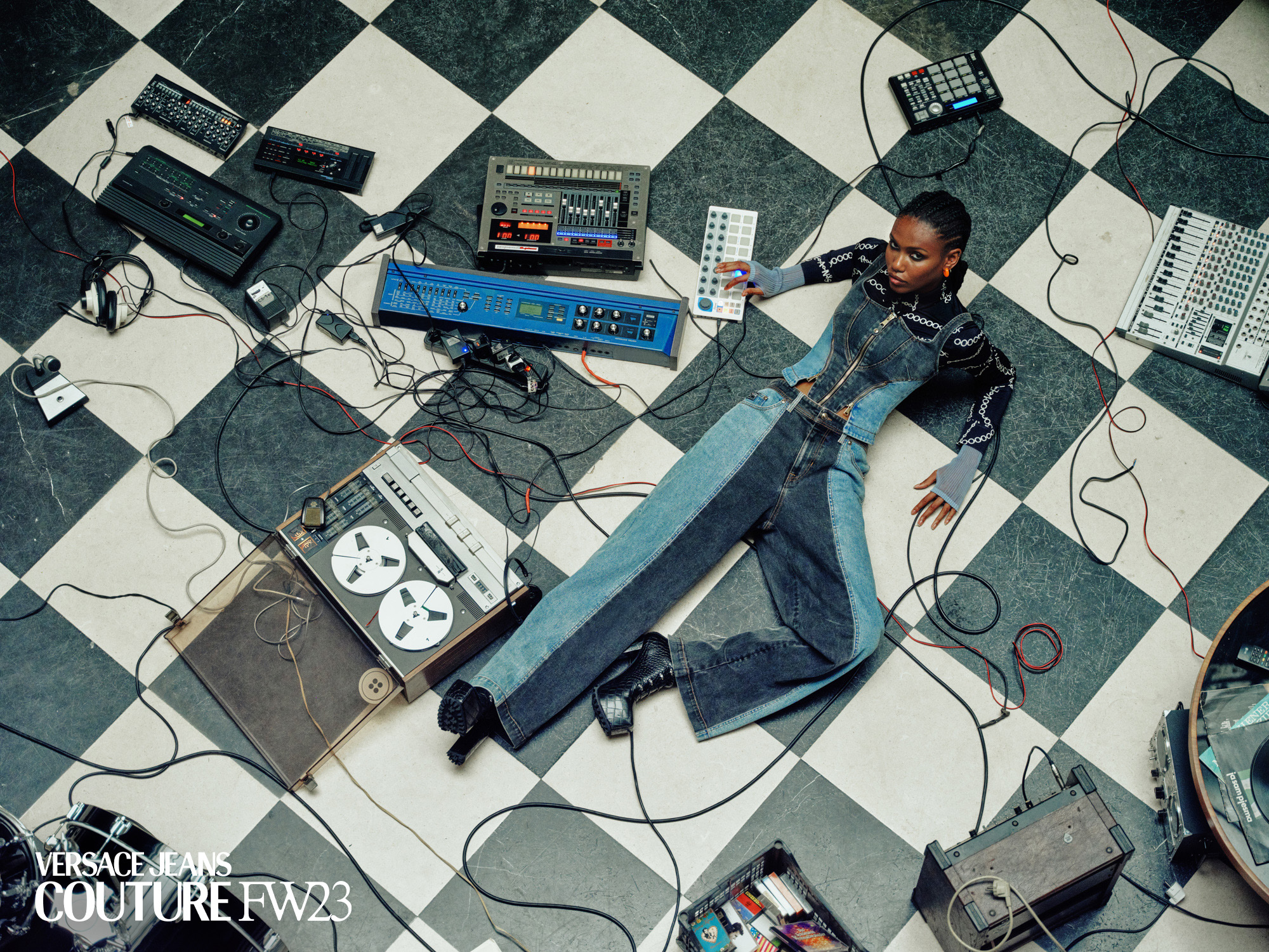 For Versace Jeans Couture's FW23 campaign we explored the sense of opportunity, discovery and inspiration that artists get when they work in a new environment, surrounded by other creatives.
