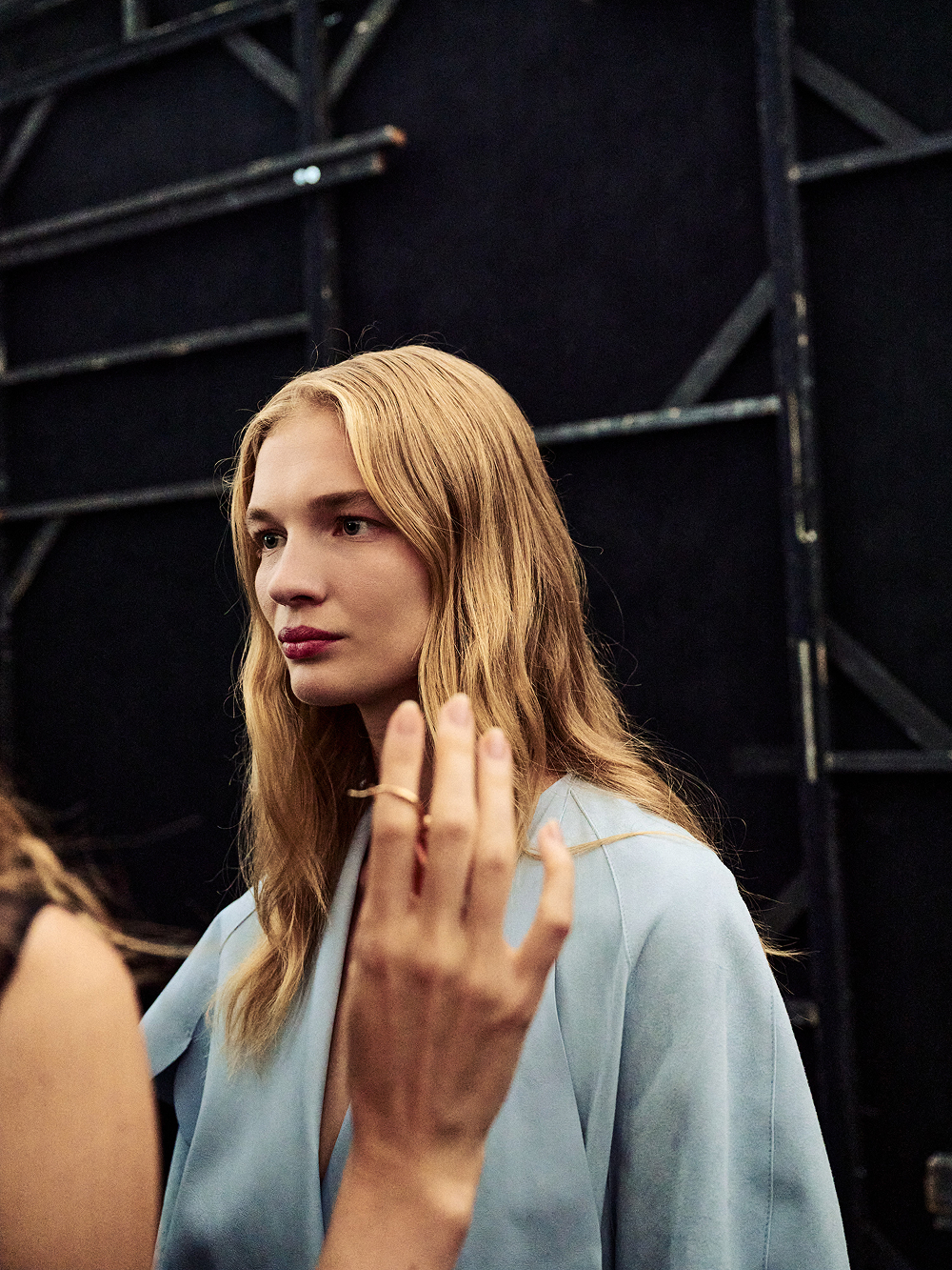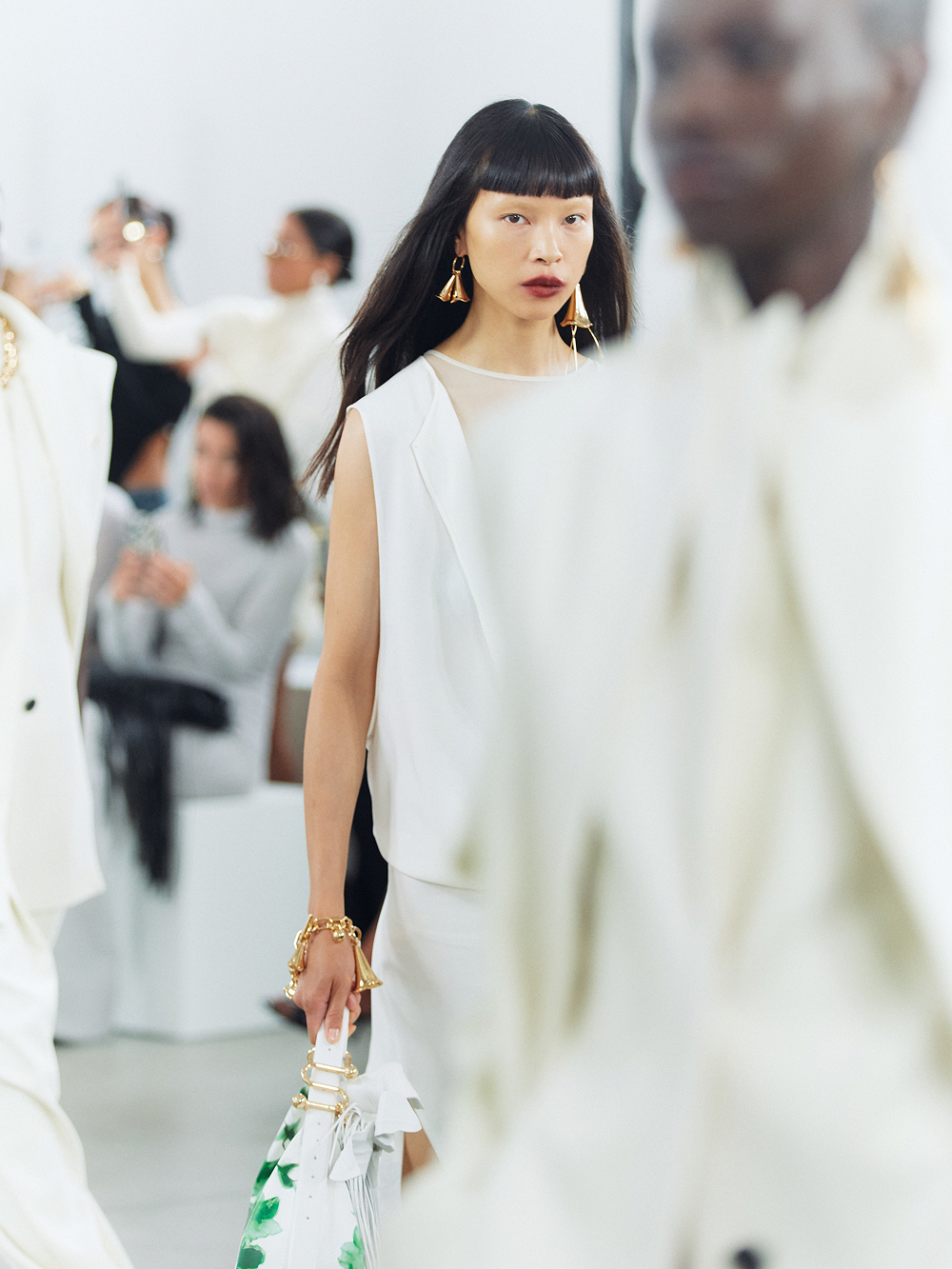To extend the vision beyond the runway, models were given MiniDV cameras backstage, capturing their own perspective in fragments of intimacy—mirror glances, quick gestures, a pulse of movement before the walk.
