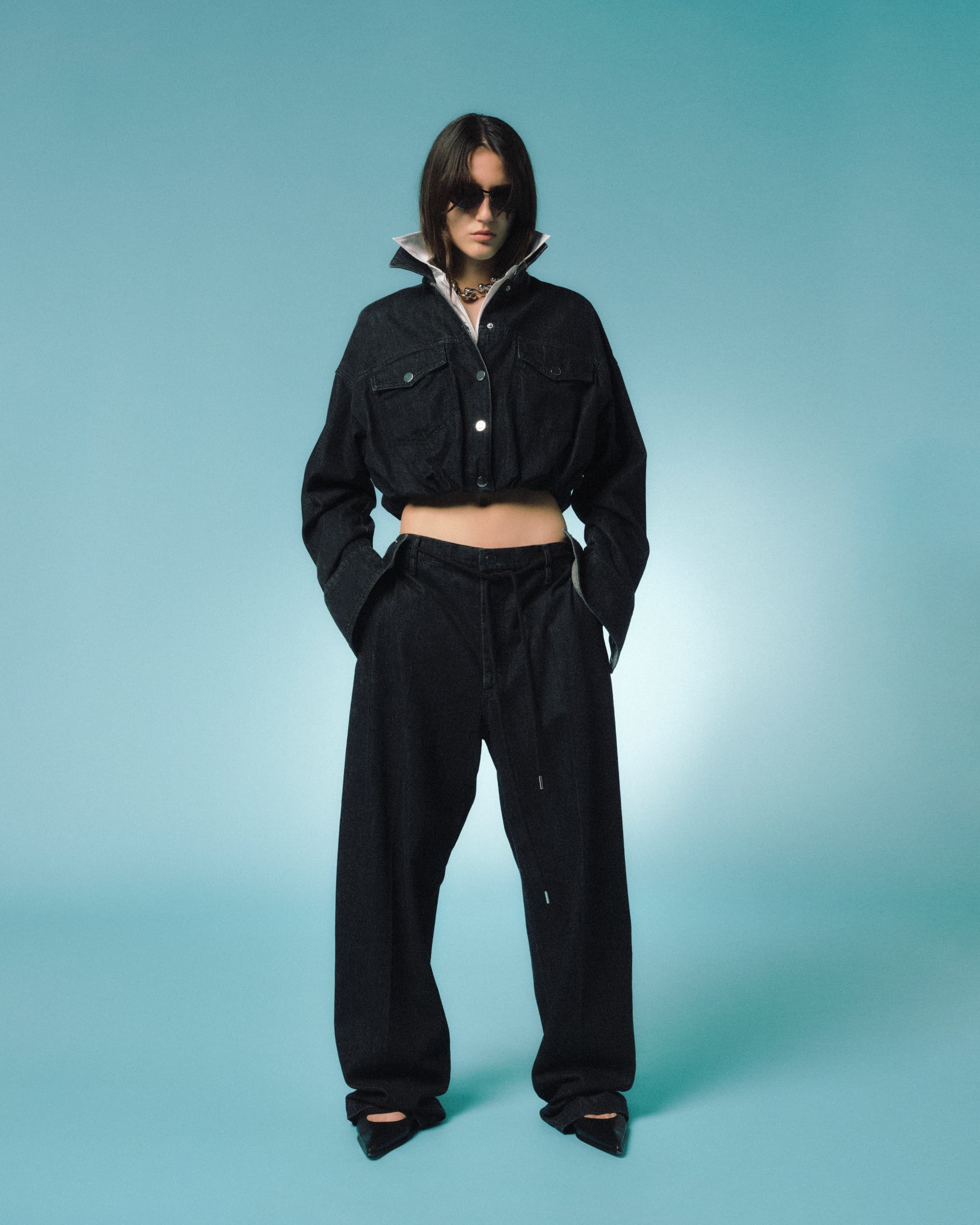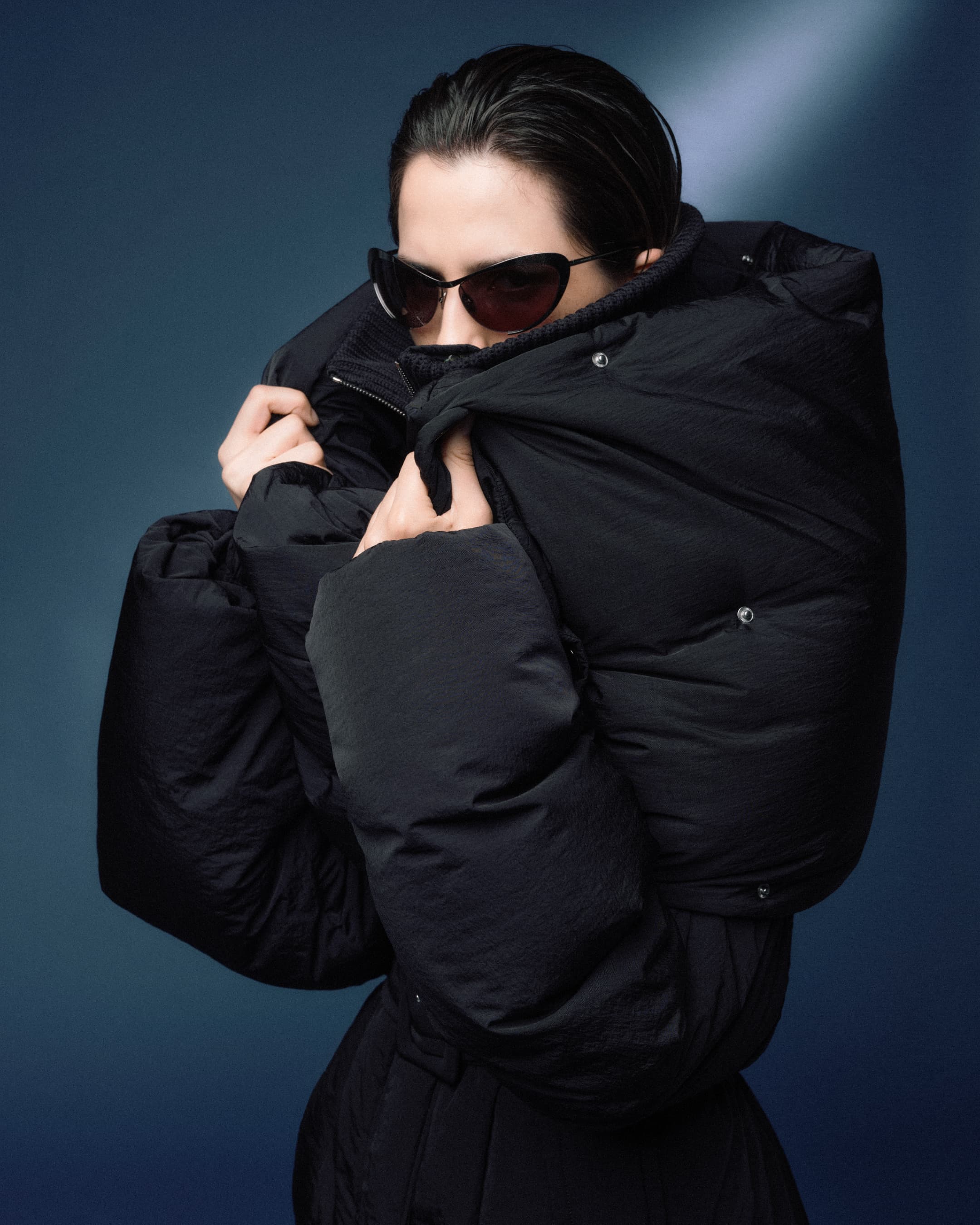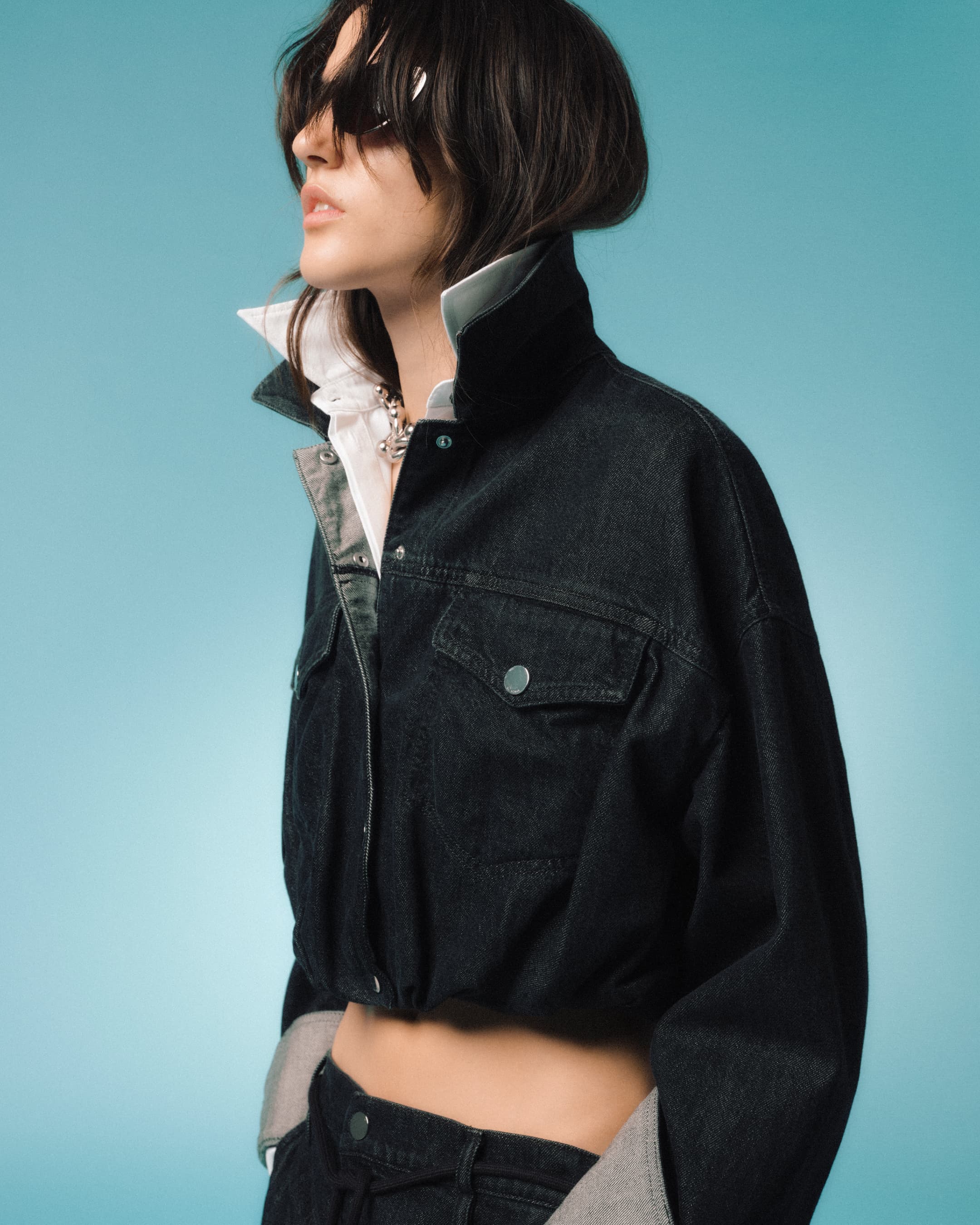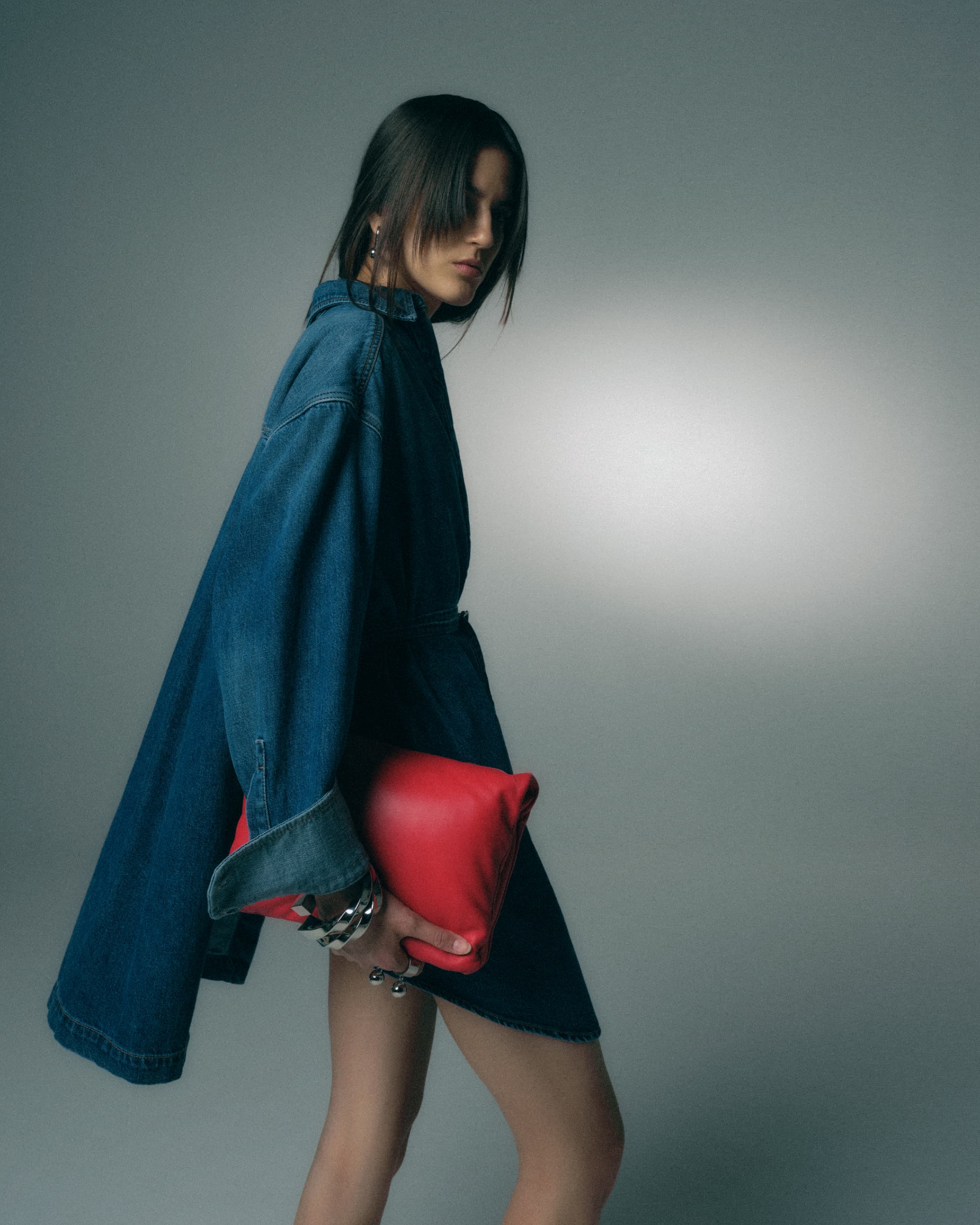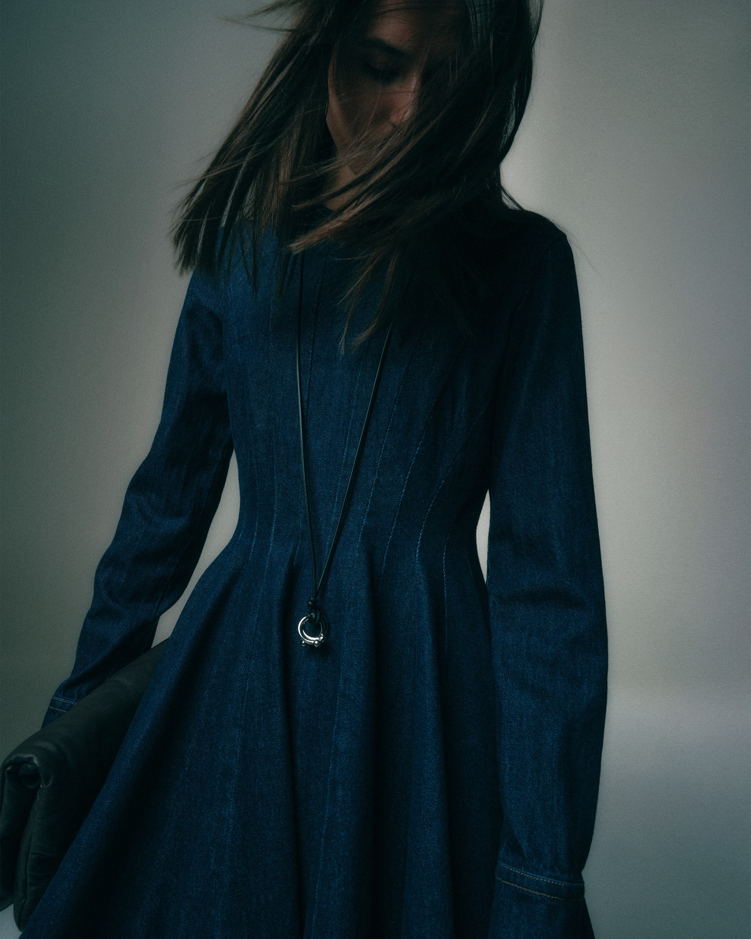 For Fall/Winter 2025, Sportmax approaches denim as a study in contrast and continuity. Inspired by the structure of a Rubik’s Cube, the campaign presents one woman across five distinct moods—each look revealing a different facet, not through transformation, but rotation.