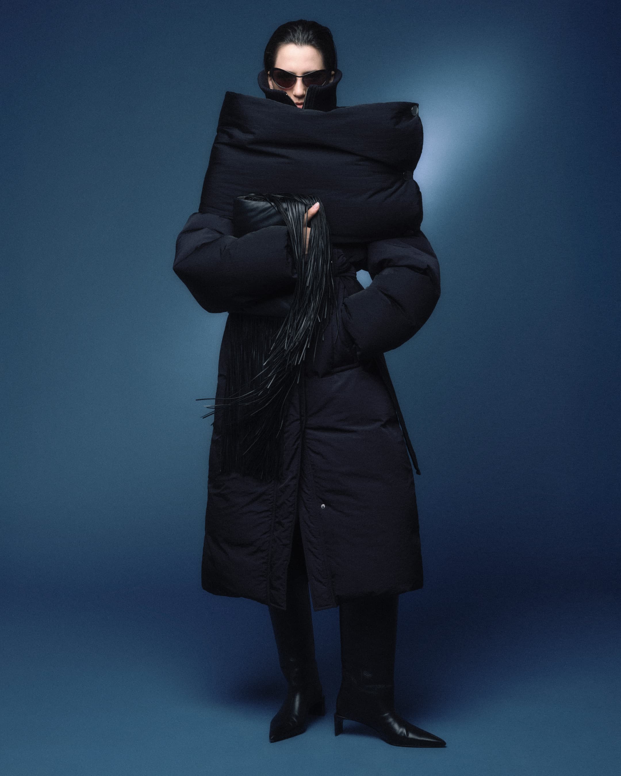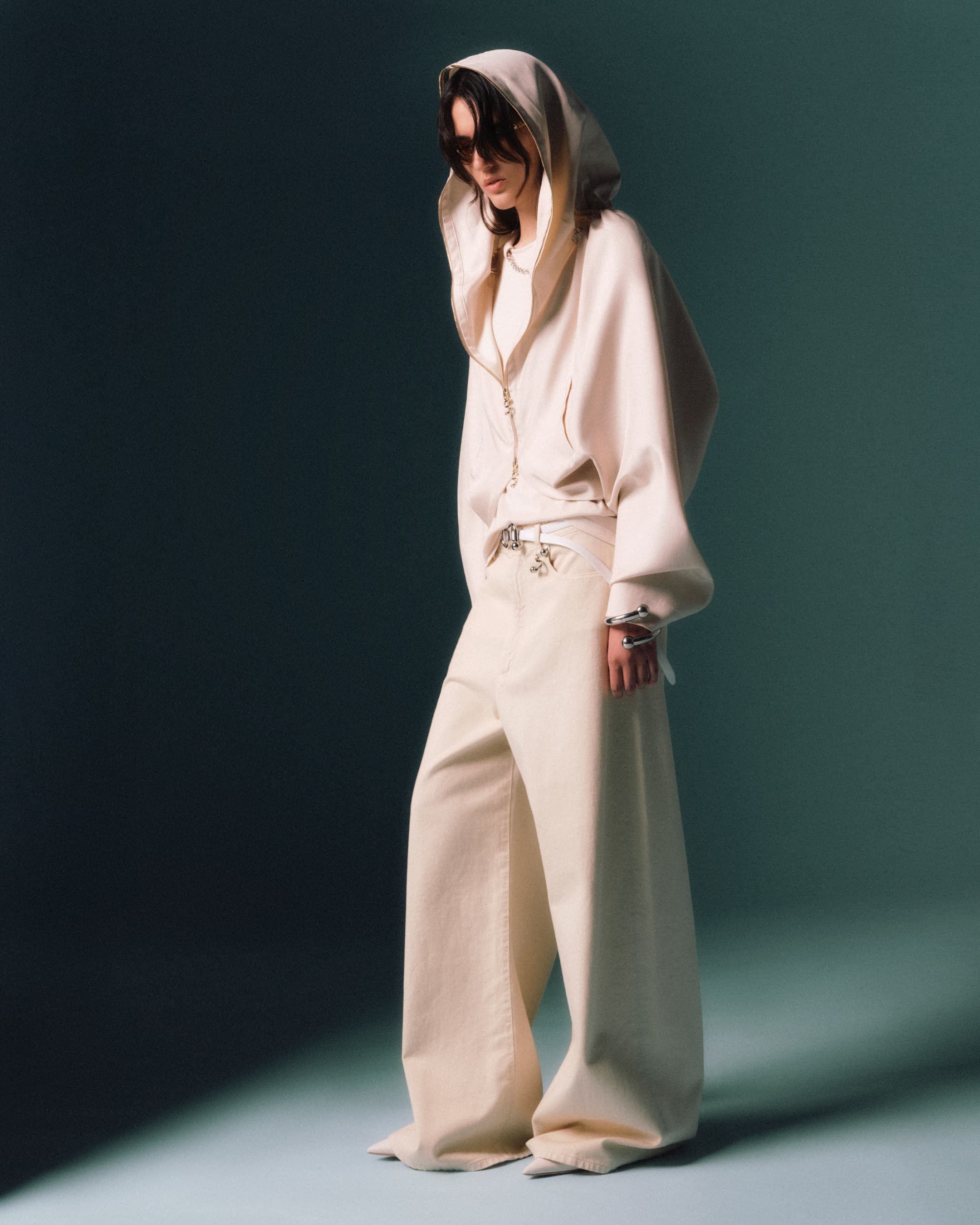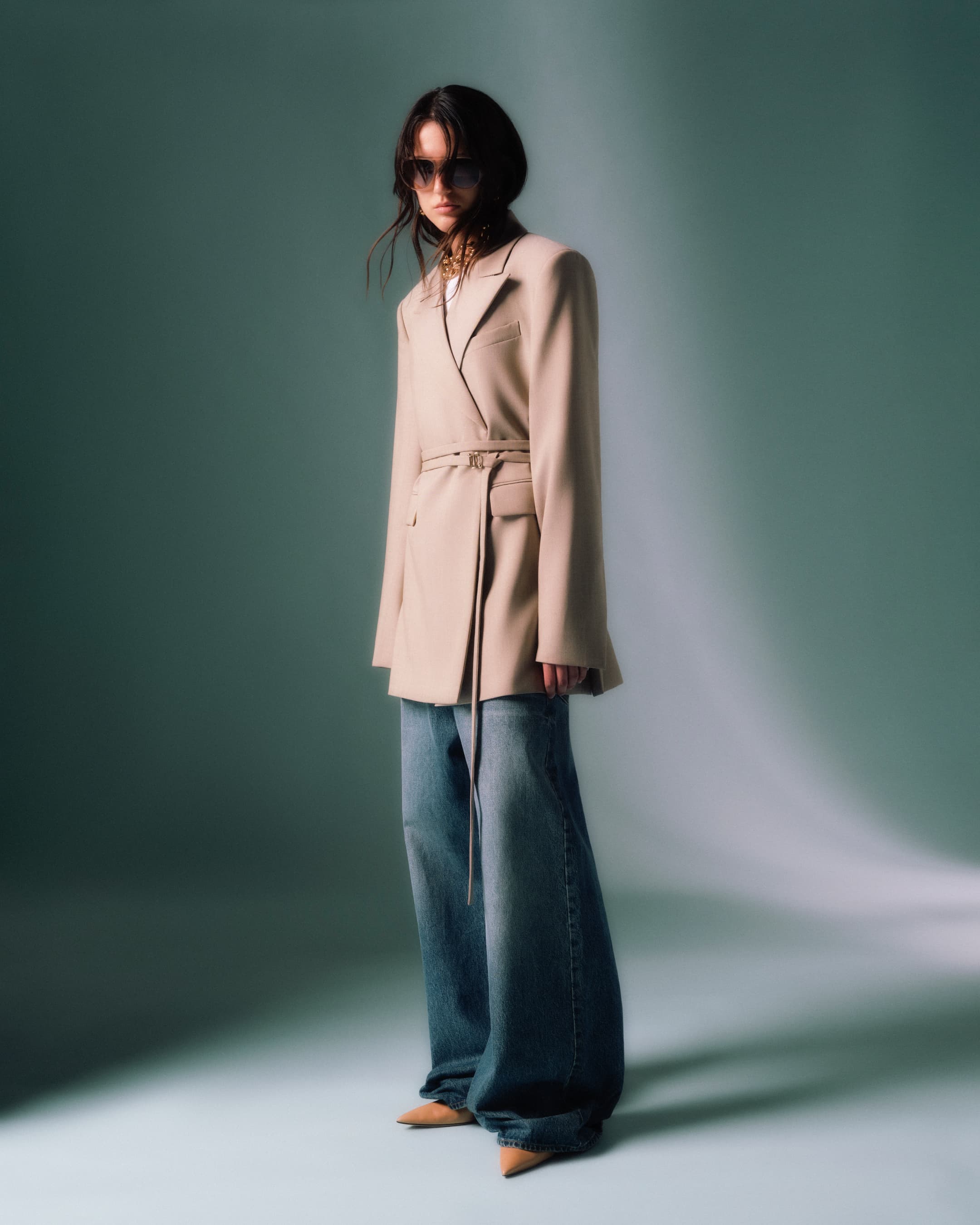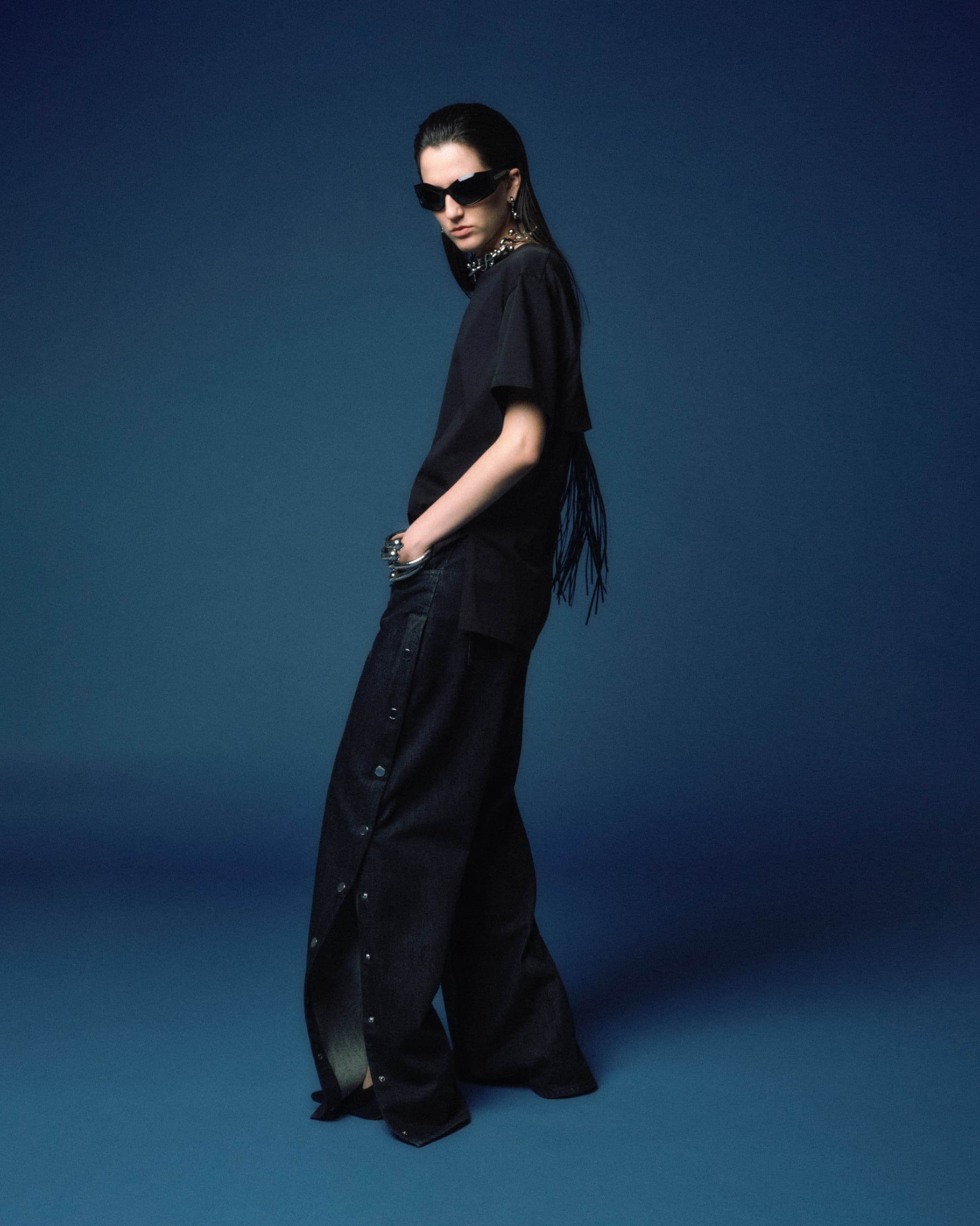 For Fall/Winter 2025, Sportmax approaches denim as a study in contrast and continuity. Inspired by the structure of a Rubik’s Cube, the campaign presents one woman across five distinct moods—each look revealing a different facet, not through transformation, but rotation.